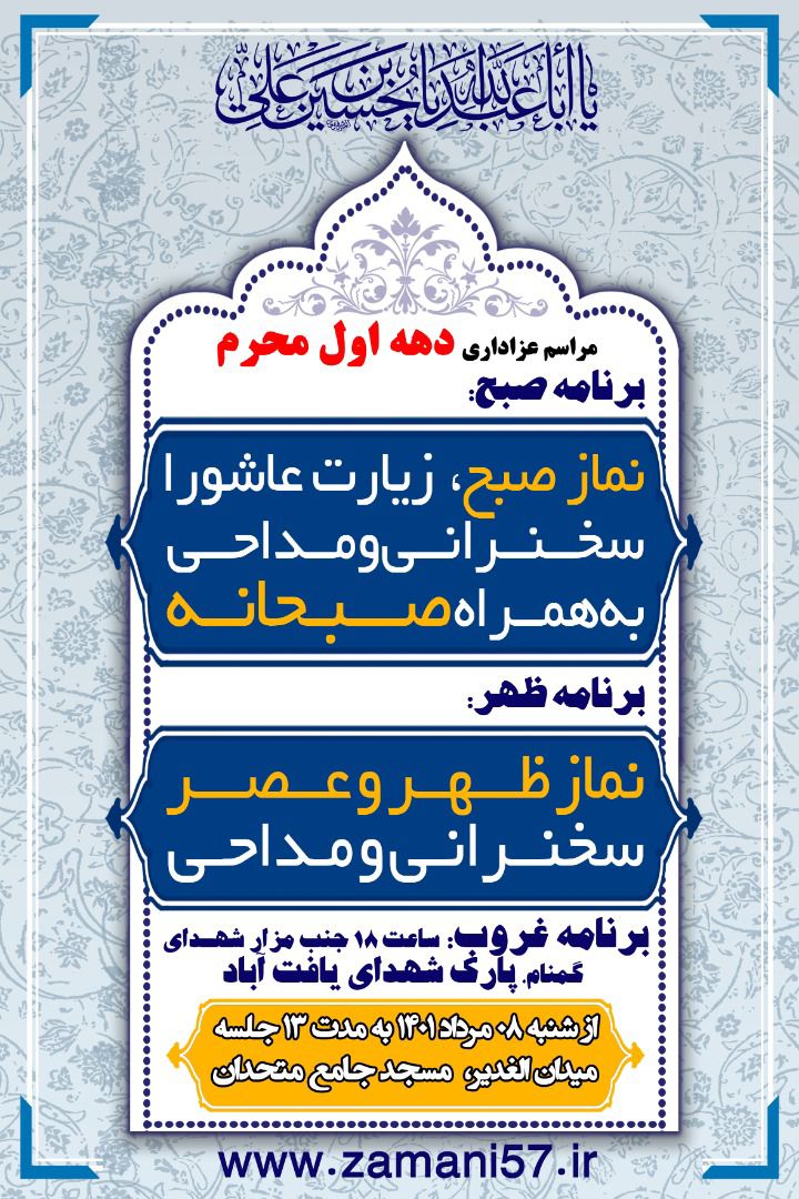 زیارت عاشورا ، قرائت قرآن، سخنرانی، مداحی و نماز مغرب و عشاء