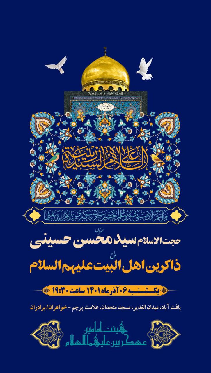 🔸 این هفته هیأت میهمان مدح عالمه غیر معلمه عقیلة العرب، حضرت زینب کبری سلام الله علیها هستیم.