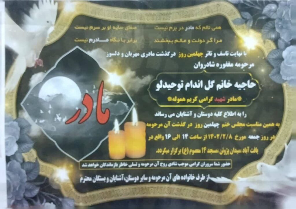 چهلم مادر شهید هموله 08 اردیبهشت 1402